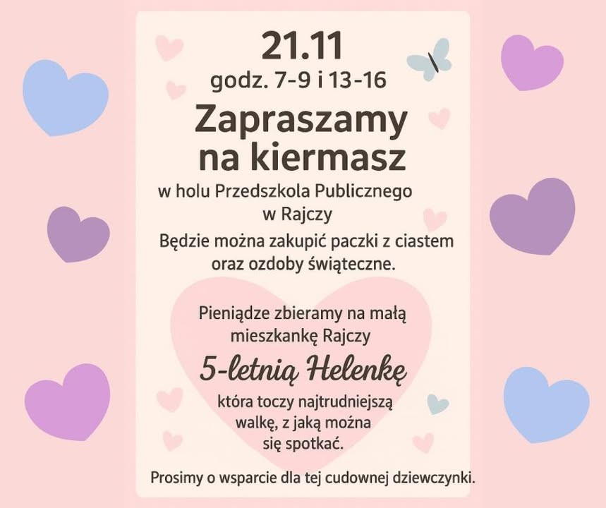już 21 listopada w holu Przedszkola Publicznego w Rajczy odbędzie się wyjątkowy kiermasz dobroczynny.