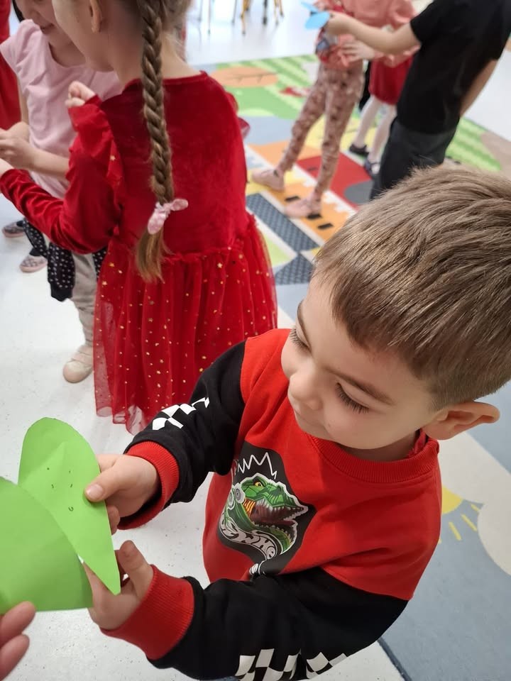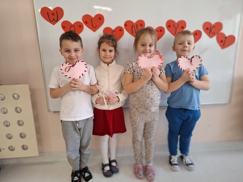 Od samego rana dzieci przyszły ubrane w walentynkowe kolory – królowała czerwień, róż i ogromne uśmiechy 😊