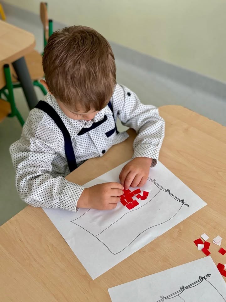 Kochane maluszki z Grupy I wykonały piękną flagę naszej Ojczyzny 🇵🇱🤍❤️
