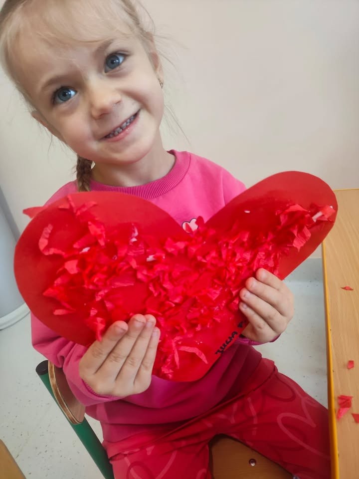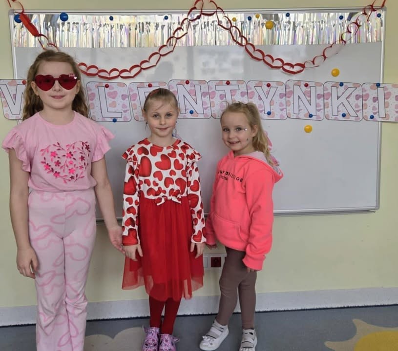 Od samego rana dzieci przyszły ubrane w walentynkowe kolory – królowała czerwień, róż i ogromne uśmiechy 😊